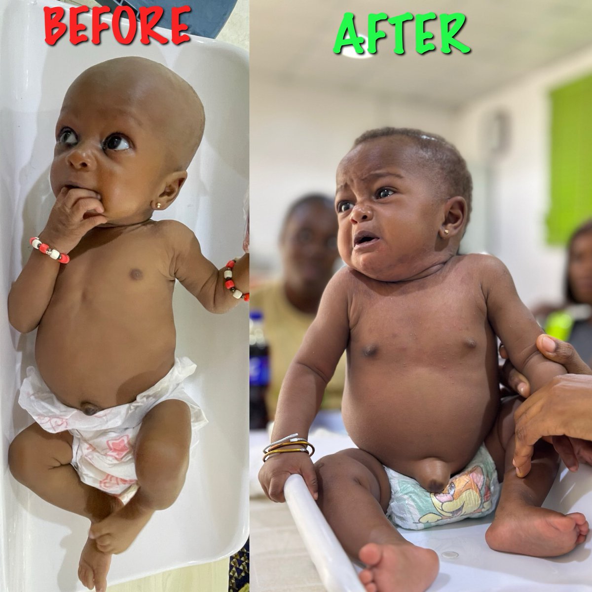Sekinat Ahmed was enrolled on account of severe acute malnutrition with a body weight of 3.0 kg. Now Sekinat has achieved catch up grow and weighs 6.2 kg