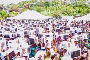 Families received nutritious food packages, enough to sustain a household for several weeks, while children enjoyed plates of jollof rice served with apples and school supplies, their laughter echoed through the community.